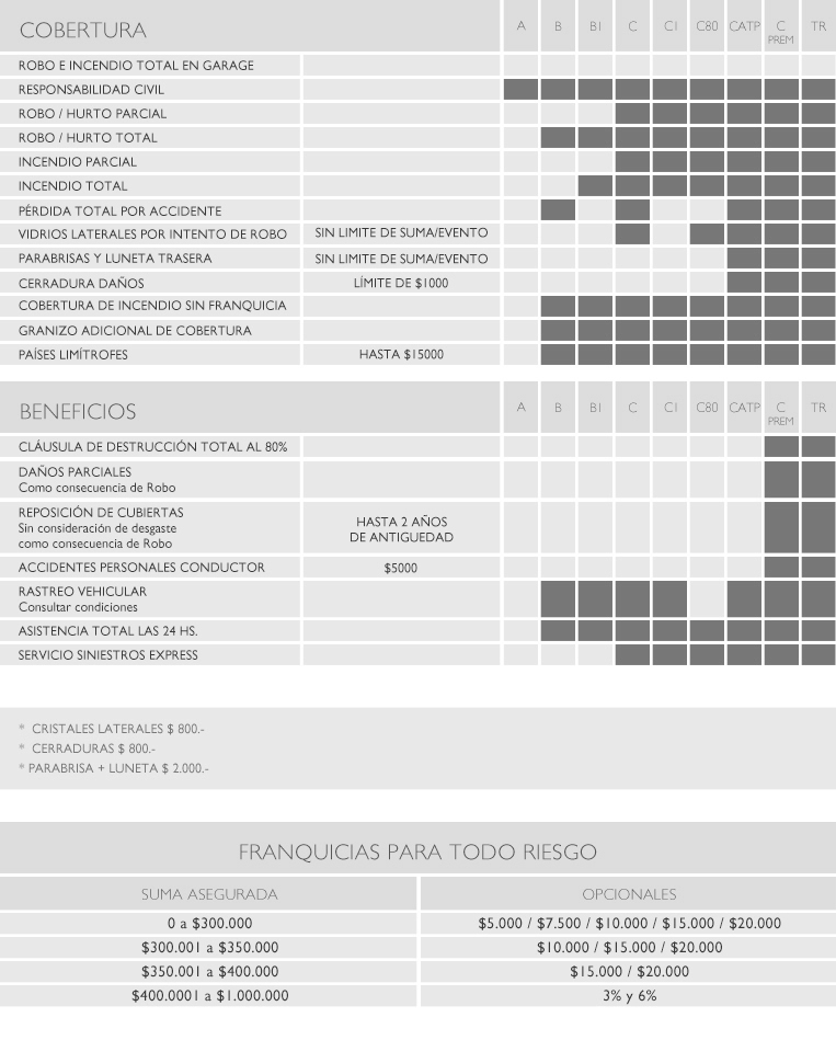 - Cobertura Accidentes Personales (titular, empleados domésticos, jardineros y pileteros).
